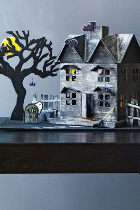 Grab the entire family and build this creepy haunted house that will look great as a table centerpiece or additional decoration on the mantel.